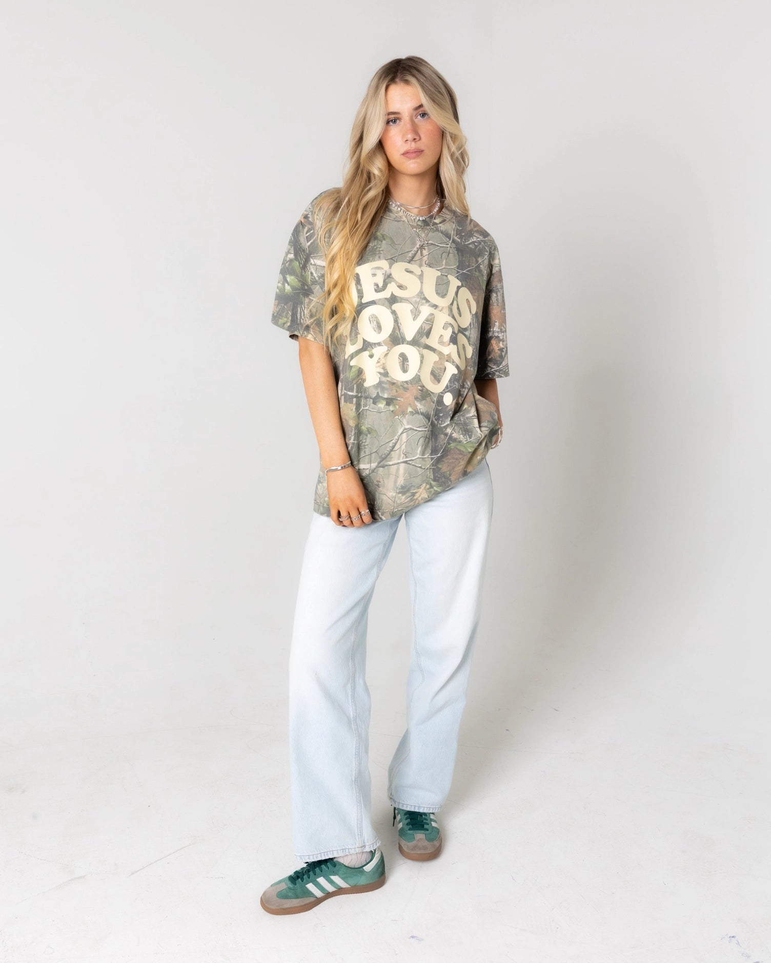 Make a statement with the Jesus Loves You Heavyweight Camo Tee. Crafted from premium 8 oz. fabric, this oversized tee delivers the perfect mix of comfort and durability. Soft to the touch yet built to last, it’s made for anyone who loves bold style with a powerful message. Wear it loud, wear it proud because Jesus loves you, always.